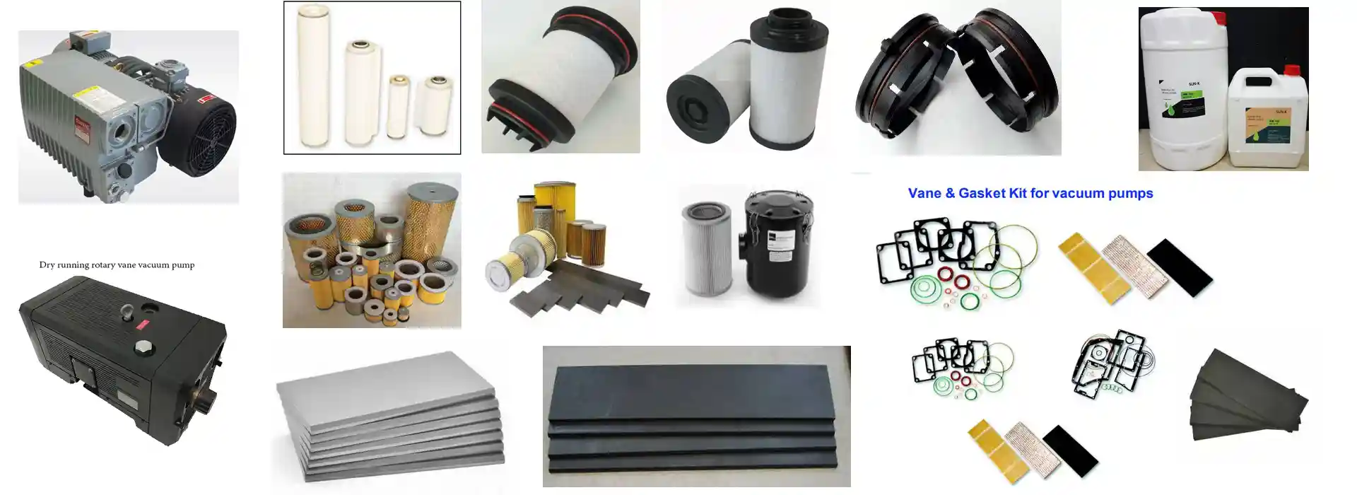 อะไหล่ Oil rotary vane vacuum pump , Exhaust filter , Oil filter และ น้ำมันปั๊มสูญญากาศ